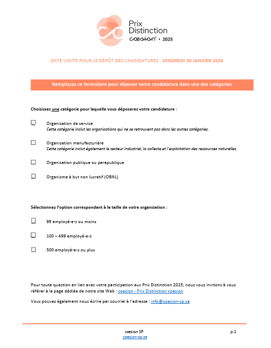 Si vous avez des questions, veuillez-nous contacter à info@coesion-sp.ca.